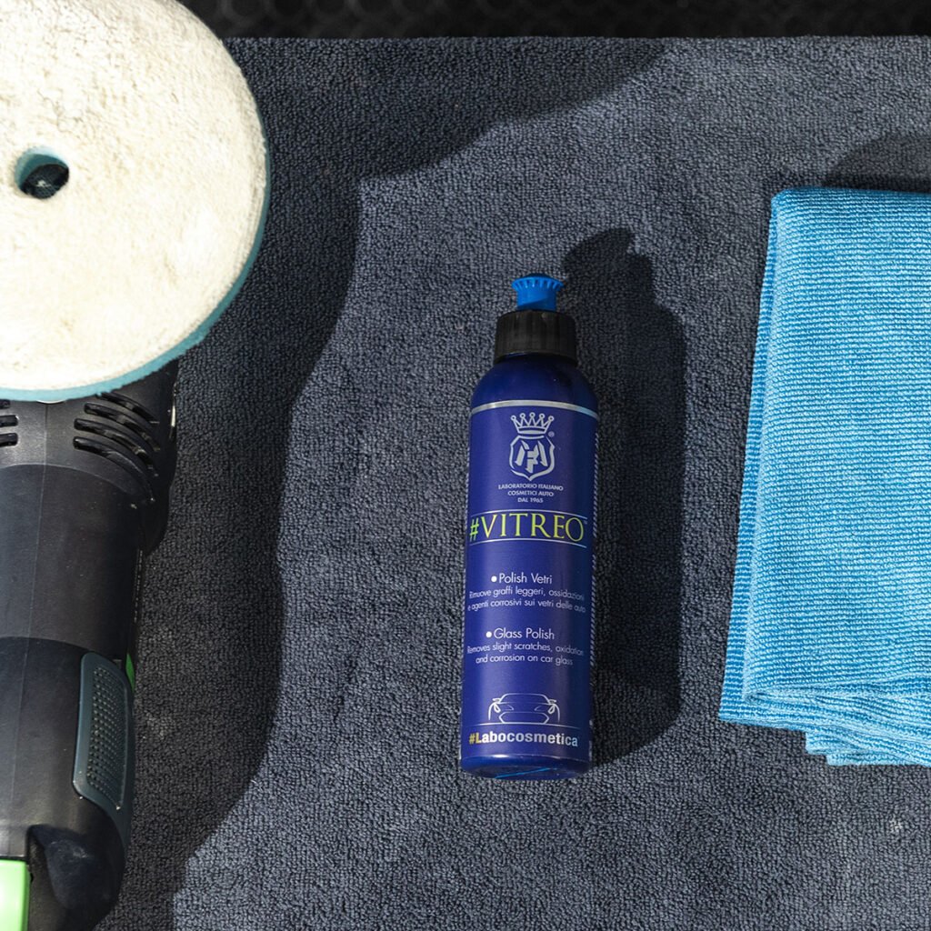 VITREO is speciaal ontwikkeld voor het polijsten van glas en verwijdert lichte krassen, waterkringen en verwering.