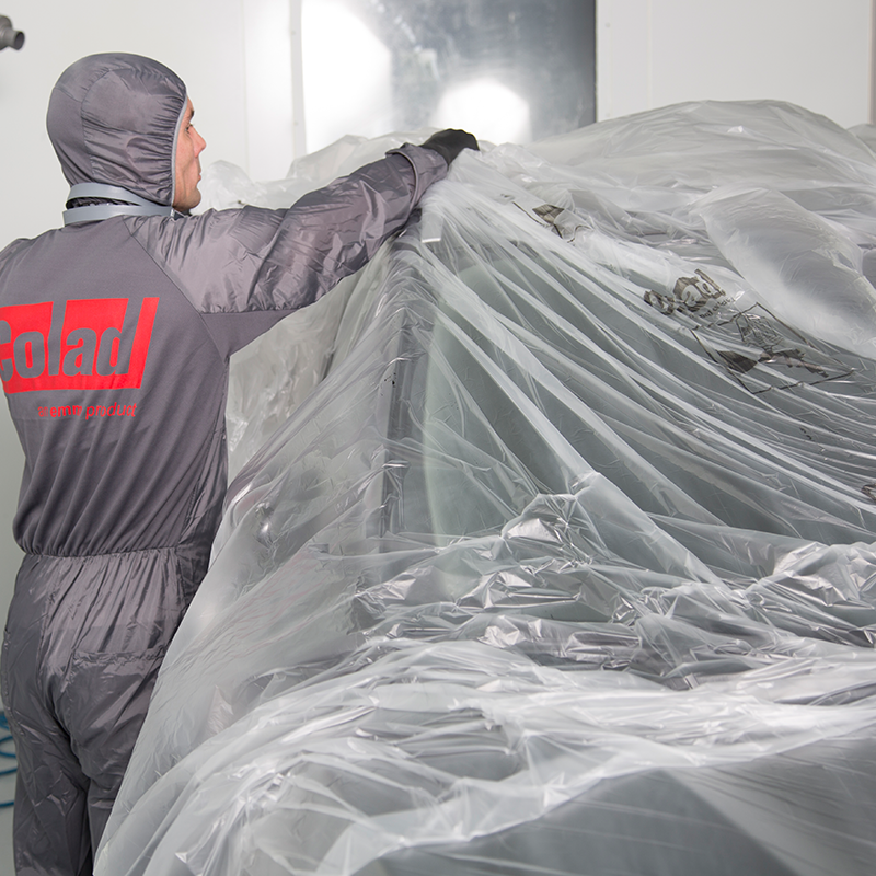 De Transparante Maskeerfolie is uitermate geschikt voor het snel en efficiënt afdekken van een voertuig en zo te beschermen tegen spuitnevel, vuil en stof. De Transparante Maskeerfolie heeft lakhechting – grondverf en/of lak hecht aan de folie. Deze folie is statisch, uitstekend snijbaar met art. nr. 2070 of art. nr. 2075. Het kan worden gebruikt met infrarood droging tot max. 120°C. Makkelijk door 1 persoon aan te brengen met de Colad Mobiele Foliedispenser (art. nr. 2062). De Transparante Maskeerfolie is milieuvriendelijk, recyclebaar en onschadelijk bij verbranding.