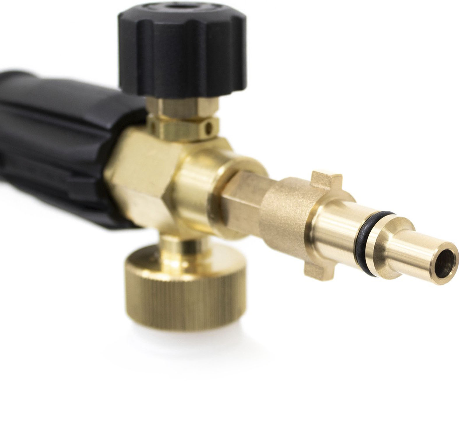 De Heavy Duty Foam Lance is een zeer hoogwaardige schuimlans voor het voorreinigen van voertuigen. Deze kwaliteits Foamlance is te gebruiken door consumenten en professionals. De verticale nozzle is instelbaar om zo de breedte van de schuimstraal te regelen, het mengsel is te regelen door de afregelknop bovenop de foamlance. Specifieke Nilfisk koppeling.